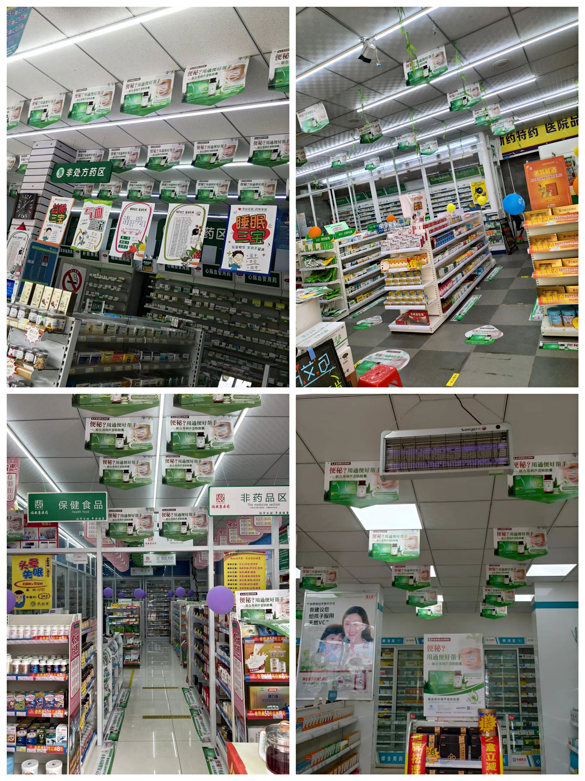 继央视&公交车广告推出后,联合邦利芦荟大单品主题陈列乘势出击,推出花式各样的终端美陈物料。
